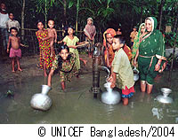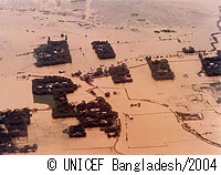 「バングラデシュの子どもたちやその家族の受けた衝撃は、これから何カ月も、その生活や健康をおびやかしつづけるでしょう。すくなくとも洪水の被害を受けた人のなかに栄養不良の子どもが100万人います。子どもたちの命を救うために、基本的な医療や栄養が手に入るようにしなければなりません。たとえ洪水の水が引いても、汚水から危険な病原菌が飲み水に入り込んできます。それが原因で子どもたちはげりになります。洪水のあとも、子どもたちが命を失う危険があるのです」とユニセフ・バングラデシュ事務所代表のモーテン・ギヤシングさんはうったえました。