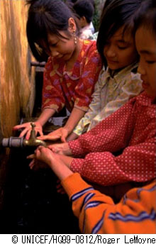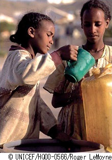 現在世界の人口は約62億人ですが、そのうち、約6人に1人、10億人を超える人びとが、安全でない、汚れた水源からくんだ水を今も使っているのです。また、世界全体で26億人、世界総人口の40%を超える人びとが基礎的な衛生サービスを受けられずにいます。ユニセフと世界保健機関(WHO)が、8月に発表した報告書の中で警鐘を鳴らしました。