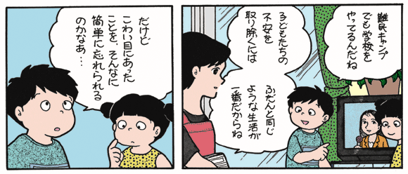難民キャンプには、災害や紛争からのがれてきた、たくさんの人たちが集まってきます。キャンプにたどりつくまでの混乱のなかで、親やきょうだいとはぐれてしまったり、体や心に傷がのこった子どもたちがたくさんいます。ユニセフは子どもたちが、一日でも早くもとの生活にもどれるように支援をしています。