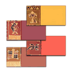 アフリカ・ジンバブエ共和国に伝わる伝統工芸品、ろうけつ染め布をカードデザインとして表現しました。布にくり広げられる世界は水の生物をモチーフに、自然のしくみをあらわしています。カード裏にも絵柄をつけ、色はターメリック、クミン、ピメント、こしょうといったスパイスの色をヒントにして作られたユニークなものです。 |