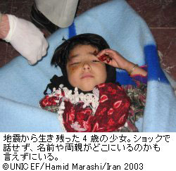昨年(2003年)の12月26日にイラン南東部にあるバムでも大きな地震があったことをおぼえていますか?およそ3万人が命をおとし、町にある建物のほとんどがこわれてしまいました。