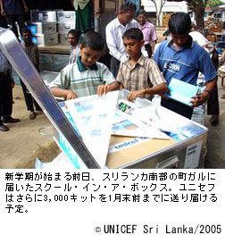 ユニセフ・スリランカ事務所代表のテッド・チャイバンさんはいいます。「津波できずついた心とからだをいやすには、学校に来ることが一番よい方法です。授業をうけたり、友達と遊んだりして、子どもたちは生活が元にもどったと感じることができるからです。」