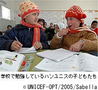 イスラエルの西のはし、地中海にめんしたパレスチナ自治区のガザ地区。イスラエルとの停戦への動きもあるなかで、イスラエル軍によるガザ地区への攻撃も行われ、いまだ落ち着いた生活をとりもどせないでいます。この地区の人口は130万人。そのうち18歳未満の子どもたちはおよそ半分65万人いるといわれています。なかには、子どもたちが紛争にまきこまれて犠牲になったということもテレビや新聞をつうじて報じられています。そこでユニセフは子どもたちのためにどのような活動をしているのでしょうか・・・。
