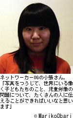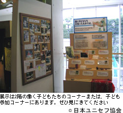 ユニセフウェブマガジンのNo.2でみなさんに紹介した、ネットワーカーOGの小張真理子(おばりまりこ)さんとお友だちがインドで撮影した写真が、ユニセフハウスで公開されています。小さなスペースですが、小張さんの写真で働く子どもたちの姿を見たり、実際に働く子どもたちが作っている石けんやレンガ、マッチやブレスレットなどの実物を見ることもできるので、より身近に体験することができます。また、ユニセフハウスでは、小張さんの写真にもうつっている水がめ運びの体験をすることができます。これからの春やすみ、ぜひユニセフハウスへ足をはこんでみませんか?