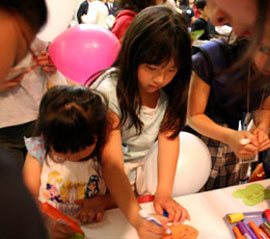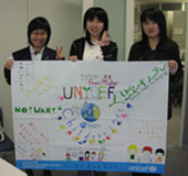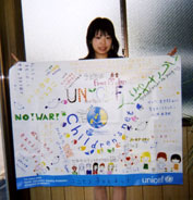 ≪ユニセフ子どもネット展示コーナーで、世界の子どもたちへのメッセージをよびかけました≫