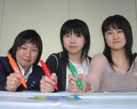 ≪みんなでつくる「ユニセフフラッグプロジェクト」≫ 全国の子どもたちに「世界の子どもたちへの応援メッセージ」を記念フラッグに書いてもらって、国技館で展示をしました。もちろん、ユニセフ子どもネットも参加しました。ユニセフハウスで書いてくれたとーこさん、郁さん、綾子さんは、学習会で出たネットワーカーのメッセージをすてきなイラストとともに、みんなの代表として書いてくれました。そのあと、フラッグは愛媛の山瀬麻里絵さんへ送られ、その後愛知に住む前田いくみさんが仕上げをしてくれました。