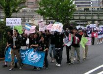 2005年5月1日(日)東京・両国国技館にて「ユニセフ子どもの祭典」が行われました。今回のイベントでは、両国駅周辺で行われたパレードにはじまり、式典、シンポジウム、子どもたちによるステージと、もりだくさんの一日でした。おそろいのユニセフロゴの入った黒いTシャツを着たネットワーカーチームは、炭谷くん、とーこさんを中心に準備や当日の進行が進められました。
