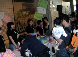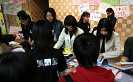 当日は想像以上の大盛況で、ネットワーカーのコーナーは大にぎわい。年齢や、国をこえて、たくさんのメッセージをいただきました。OGの中津川有紀さんがお友だちをつれて、ネットワーカーのサポートをしてくれました。ありがとうございます。 |