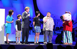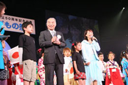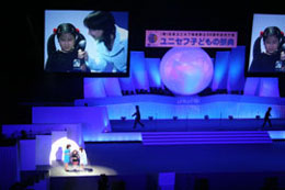 ネットワーカーによる「チルドレン・ファースト宣言」が行われたあと、いろいろな国の子どもたちがステージにあがって「小さな世界」を歌い、感動的なフィナーレをむかえました。 |
