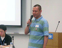 みんなの発表を見て、日本ユニセフ協会事務局長の早水研(はやみ・けん)さんからコメントがありました。早水さんは、スワジランドに実際行ってきて、HIV/エイズによって子どもたちが危機にあっていることを目の当たりにしたお話をみんなにしました。また、みんなの意見のなかで出ていた言葉、「近くの人にやさしくする」「ひとりじゃない」などの言葉を引用しながら、自分たち、つまり子どもたちにもできることを考える大切さについて話しました。
