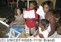 ユニセフは国連チームのひとつとして、今回のカトリーナにともなう緊急支援をおこなっています。たとえば、子どもたちの遊び道具が入ったレクリエーション・キットや、80人分の学用品が入ったスクール・イン・ア・ボックスを子どもたちに届けています。遊んだり、みんなで勉強をしたりすることで、心の傷をいやし、もとの生活を一日でも早く取り戻すために役だてられています。