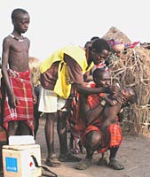 この地域に住むハマル族とカロ族は農業・牧畜を営んでおり、ヤギや羊、牛といった家畜と共に移動を続ける遊牧生活をしているため、すべての5歳未満児へのワクチン接種が困難な課題となっています。