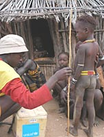 全国ポリオ予防接種の日は、2005年7月29日から8月6日の期間にわたって行われました。62人のボランティアがハマル地方全域に散らばり、5歳未満の子どもたちおよそ9,000人に予防接種を実施しました。