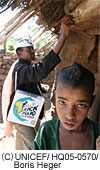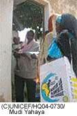 2005年、アフリカでは22カ国で大規模なポリオ予防接種がおこわれました。保健スタッフはポリオ・ワクチンを持って一件一件家を訪ね、およそ100万人の子どもにポリオ・ワクチンを投与することができました。ポリオの予防接種が終わった家には、スタッフによってしるしがつけられます。この家庭には子どもが何人いるか、何人の子どもが予防接種を受けたかをしるし、すべての子どもたちにいきわたるように進められています。