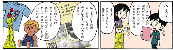 ユニセフの「グリーティング・カード」や「プロダクツ」はユニセフハウス(東京都港区高輪4-6-12)の1階でもあつかっております。