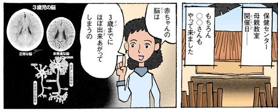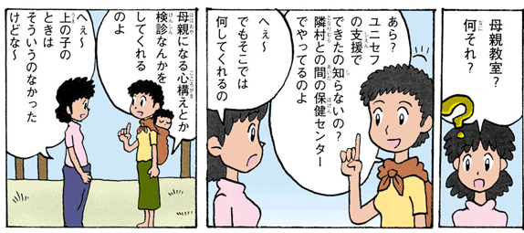 「乳幼児総合ケア」とは、どんな意味でしょうか。かんたんに言うと、愛情あふれる育児の大切さを途上国の人たちにも知ってもらおうということです。ユニセフの大切な活動のひとつでもあります。さて、どうして知ってもらうことが大切なのでしょうか…?