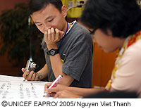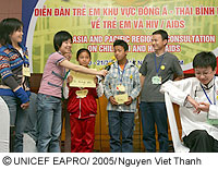 中国、インドネシア、ラオス、ミャンマー、モンゴル、パプアニューギニア、そしてベトナムから集まった、12〜18歳までの代表の子どもたち13人が、ハノイで開催された「子どもとHIV/エイズ 東アジアと太平洋地域会議」のユースフォーラムに参加しました。