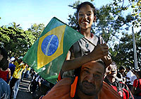 | ドミニカ共和国の首都サントドミンゴに集まったブラジルチームを歓迎する人々 |