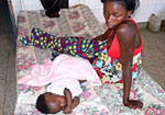 | 病院で横たわるマラリアに感染した息子と母親サクワイラ。 |
