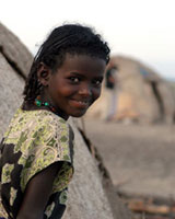 メディナは遊牧をいとなむ家族とともに、エチオピアの北部にあるアファール州にくらしています。ここでは、89パーセントの子どもたちが学校に行くことができません。ユニセフは、移動をしてくらす遊牧民の子どもたちを学校で教育を受けることができるように支援しています。