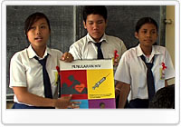 感染のながれをくいとめるために、ユニセフはパプアの若者へエイズの危険を知らせるための教育を支援しています。このキャンペーンのゴールは、教室でエイズにかんする認識をたかめることや、若者にエイズの正しい知識を教えて、「ピア・エデュケーター」(同じ若者やなかまに、エイズの危険について、ただしい情報をつたえてくれる人)をそだてることです。