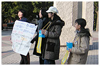 さむいなか、1時間にわたって募金活動もおこないました。街頭募金かつどうがはじめてのメンバーがほとんどにもかかわらず、大きな声をだして、みんなで募金をよびかけました。