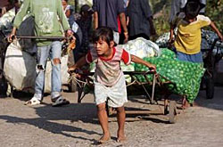 本当にちっちゃい子たちが、最初から学校にいけることはできなくて、4歳とか5歳、もっとちいさい3歳の子どもたちが、大きなリヤカーをひいて仕事をしたり、路上で水をうったりしているんです。