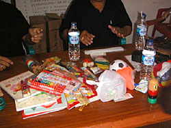 わたしが今回自分であつめた古着やおもちゃをもっていきました。おりがみ、紙風船などでしたが、すごくよろこんでくれました。 |