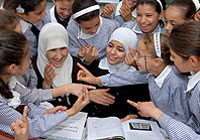 | 学校でおたがいに勉強をおしえあう子どもたち |