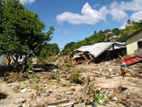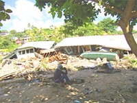 今から1カ月まえの2007年4月2日(月)朝7時40分に、ソロモン諸島(しょとう)を、マグニチュード8.1の地震と津波(つなみ)がおそいました。地震があった一週間後の報告によると、この地震によって5万人が被害(ひがい)をうけ、そのうち子どもは3万人をこえると言われています。900軒以上の家や建物がこわれたため、およそ25,000以上の人が住むところをなくしてしまったそうです。
