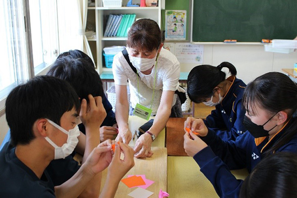 更に、7月には生徒会執行部の提案により、全校生徒で「平和への願い」を込めて千羽鶴を作ることとしました。鶴を折るにあたっては、地域の方から折り方指導をいただきながら取り組み、8月の花巻市戦没者追悼・平和祈念式において奉呈したところです。全校生徒の平和意識が高まる取り組みでした。これからも、自分たちにできることを考え、活動を続けていきたいと思っています。