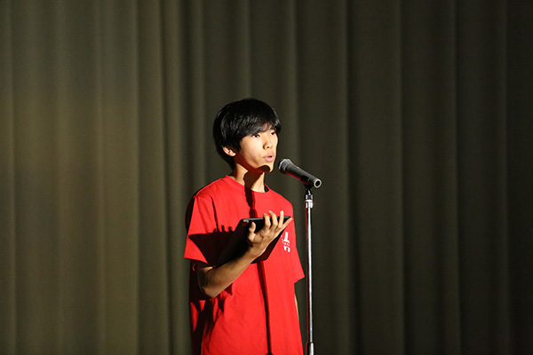 オリジナルTシャツを着用した実行委員長による開会挨拶