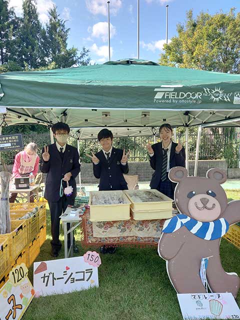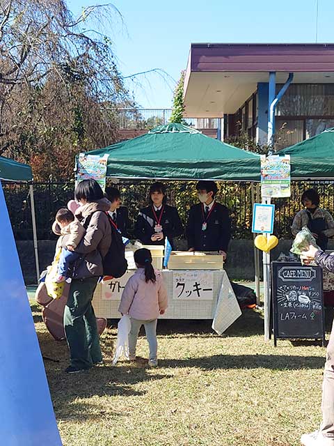 先生の声:もちろん最終的にはユニセフに売り上げの一部を寄附する目的でしたが、さいたま市の農業の活性化のお手伝いとしても野菜を使ったお菓子を大崎公園で販売しました。生徒にとってもお客様と触れ合える良い機会となり、コミュニケーションの面でも成長を遂げることができました。