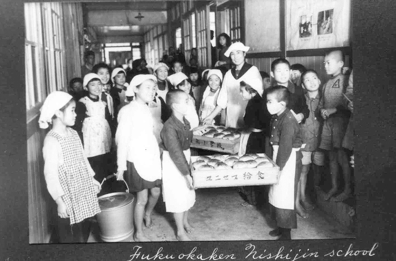 第二次世界大戦が終わったあと、日本の子どもたちは食べるものや着るものも足りず、きびしいくらしをしていました。ユニセフは1949年から1964年までの15年間、日本の子どもたちに粉ミルク(脱脂粉乳)や原綿、くすりなどの支援をおこないました。日本中の子どもたちが学校の給食で粉ミルクを飲み、健康を取りもどしていきました。原綿は、服の材料として学校の制服などに使われ、日本の経済が回復するのにも役立ちました。ユニセフが日本に送った支援の金額は、当時のお金で65億円にもなりました。