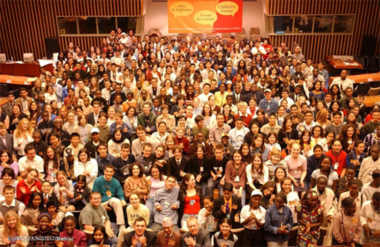 世界150か国以上から400名をこえる子どもたち、60か国以上の世界のリーダー、180か国の政府の代表など、あわせて7000人以上が参加しました。特別総会の前には、「子どもフォーラム」という集まりが3日間行われ、子どもたちだけで話し合いをしました。