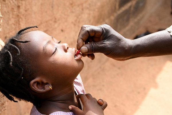 はしか、破傷風(はしょうふう)、ジフテリア、百日咳(ひゃくにちぜき)、結核(けっかく)、ポリオなどの予防接種をおこなうことで、子どもを病気から守ります。ユニセフは、世界で一番たくさんのワクチンを届けている組織です。世界の予防接種率は、今は80%に達しています。