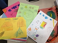 これらの手紙は、アグネス大使が去年の11月にパレスチナ自治区を訪問した時に預かってきました。パレスチナ自治区は、紛争がずっと続いていて、子どもたちは、学校に通うだけでも一日に何回も、検問を通らなければならないような厳しい状況にいます。アグネス大使が訪れたとき、センターの壁には、ほうらい幼稚園からの手紙が飾られていました。 センターから預かった手紙は、アラビア語から日本語へ直して、ほうらい幼稚園へ届けました。センターからのプレゼントの入った大きな箱には、手作りのお人形やお花の飾りなどが入っていました。そして、お返事には、友だちになったみんなの心配する声、健康と幸せを願うメッセージ、そして、「すてきなお手紙、ありがとうね」「日本のみんなのこと、大好きだよ」と書かれていました。ほうらい幼稚園の壁も、センターと同じように、センターの子どもたちからの手紙が飾られていました。 被災地と紛争地の子どもたちの間に芽生えた友情、お互いを思いあう気持ちが海を越えてつながっています。 |