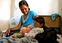 大型の台風24号がフィリピンを襲ってから数ヶ月たちました。現在、フィリピンの5歳を迎える前の子どもたち約6万7000人が栄養不良の危機にあるとみられています。ロングロング君(3歳)もその内の一人です。ロングロング君は、山間の農村部の地域で暮らしている先住民族の男の子です。この台風で、大きな被害がでた地域でした。また、元々栄養不良率が平均を上回っている、栄養不良児の人数が多い地域でした。「台風で、家も、とうもろこしやさつまいもを育てていた畑もなくなりました。」とロングロング君のお母さんは話します。ロングロング君一家は、台風の後、米とさつまいもでなんとかしのいできました。 台風から数週間後、ロングロング君の体にむくみがみられました。皮膚も炎症をおこし、やけどをしているような様子でした。お母さんは、すぐにロングロング君を37kmはなれた病院へ、泥道を3時間かけて連れていきました。お母さんはその1週間前、ユニセフとパートナー団体が実施した研修を受けたばかりでした。「研修の時にロングロングと同じような症状に苦しむ子どもの写真を見ました。それで、研修を担当していた医師にロングロングの写真を送りました。」とお母さんは話しました。 ロングロング君は、病院へ急送され治療を受けました。現在、薬を使った治療と栄養価の高いペースト状になっている栄養治療食を与えられています。数日前からは身体を起こすことができるようになりました。ロングロング君が家に戻れる日ももうすぐです。 |