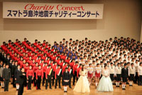 星野高等学校・星野学園中学校がチャリティコンサートを開催しました星野高等学校・星野学園中学校(埼玉県川越市)では、5月8日(日)、星野記念講堂ハーモニーホールにて、「スマトラ沖地震チャリティコンサート」が行われました。 このコンサートは、同校の生徒の皆さんの「スマトラ沖地震・津波によって被災した地域の子どもたちの力になりたい」という自主的な声から開催されたものです。同校の「音楽活動を通した奉仕と国際理解」という基本理念により、出演者、運営スタッフ、展示とも、すべてが同学園のみなさんによる手作りコンサートでした。 コンサートを通じて集められた義援金は、すべてスマトラ沖・地震津波復興募金として、日本ユニセフ協会にご寄付いただきました。