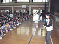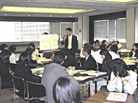 県内の教職員、指導主事の方々を対象とした「ユニセフ研修会」では、ユニセフ活動についての説明に加え、ユニセフが推進している地球市民としての自覚などを養うことを目的とした「開発のための教育」の手法を用いて、「子どもの権利条約」についてのアクティビティを行いました。 参加者からは「子どもの権利条約については知っていたが、改めてじっくり考える良い機会となった」「ほかの学校の先生方の意見を聞いたり、情報交換ができた」など、さまざまな感想が寄せられました。 学校のプログラムでは、ビデオ上映などによるユニセフ活動の説明のほか、ネパールで毎日の水くみに実際に使われている水がめや、マラリアの被害から子どもたちやその家族を守るための蚊帳などの紹介と、キャンペーン期間中に発生した「ジャワ島地震」に対するユニセフの活動を紹介して、世界の子どもたちの現状についての理解を深め、考えていただきました。