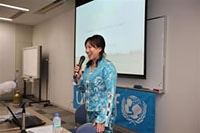 次に、ユニセフ基礎講座や、ユニセフ協会が提供している資料のご紹介、教室ですぐに使える「子どもの権利条約についてのアクティビティ」を体験しました。ユニセフハウスの展示スペースの見学後、7日は神奈川県 川崎市立御幸中学校 竹内右子先生より、開発途上国でのユニセフの支援活動視察(モンゴル)のご報告とスタディツアーを活用した実践事例についてご報告をいただきました。また10日には、先駆的な取り組みとして、東京都品川区教育委員会指導主事滝渕正史氏より、社会性の高い子どもの育成を目指して実施している品川区の「市民科」の試みについてご報告いただきました。いずれの報告も参加者からとても好評でした。