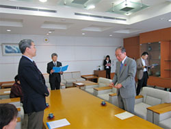 『ユニセフ・キャラバン・キャンペーン』では、各県とも一日目には知事・教育長への表敬訪問及び教職員・指導主事対象の研修会、二日目には学校でのユニセフ学習会を実施しました。知事・教育長への表敬訪問では、知事・教育長とのメッセージ交換を行い、県内でのユニセフへの支援に感謝を表すとともに、引き続きのご理解とご協力をお願いしました。