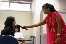 今回の内容は、まず、ユニセフ基礎講座でユニセフの活動や世界の子どもたちの現状を知っていただきます。そして、開発途上国の保健センターや学校の教室等を再現した展示スペースの見学後、ネパールからの留学生 エソダ・バスネットさんをお招きしての楽しいプログラムや皆さんに参加いただくアクティビティなどを予定しています。エソダさんは勉強の傍ら、日本の様々なところでネパールの文化等を紹介されています。また、NHK、日本テレビ、東京MXテレビ、朝日テレビなどテレビ出演のご経験もあります。