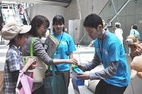 当日は、朝早くから高校生、大学生、社会人のボランティアのみなさんが準備に加わってくださいました。「東日本大震災緊急支援への募金にご協力をお願いします!!」と大きな声で募金のよびかけを行い、その呼びかけに応えて多くの方々が募金にご協力してくださいました。中にはお財布の中の小銭を全部募金箱に入れてくれた小学生もいました。 栄養が足りなくてやせほそってしまった子ども、震災で家や家族をうしなってしまった子ども、遠い国から励ましのメッセージを送って応援してくれている子ども、みんなが同じ地球に暮らす仲間なのだということを感じてもらえたと思います。 展示を見ながらお勉強してくれた小学生のみなさん、募金にご協力くださったみなさん、当日お手伝いをしてくださったボランティアのみなさん、すべての方々に心からお礼申し上げます。