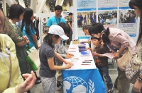 東京私立中学合同相談会にブースを出展・募金活動を行いました5月8日(日)昨年に引き続き、東京国際フォーラムで行われた東京私立中学合同相談会に日本ユニセフ協会がブースを出展、今年は東日本大震災のための募金活動も行いました。ブースでは、「ユニセフの活動」や、「世界の子どもたち」、「100円でできること」、「東日本大震災での支援内容」、「世界の子どもたちから東日本の子どもたちへのメッセージ」の展示を行いました。また、展示を見て問題に答える「ユニセフクイズ」も行い、たくさんの小学生がブースを訪れ、クイズに参加してくれました。