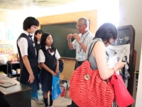 ユニセフ基礎講座では、DVD「ユニセフと地球のともだち」の上映の後、開発途上国の子どもたちの現状やユニセフの活動について、パワーポイントを用いて解説しました。その後、開発途上国の保健センターや学校の教室を再現したユニセフハウスの展示スペースを、展示案内スタッフの説明を受けながら見学しました。