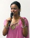 ゲストコーナーでは、現在、横浜国立大学大学院に在学中のネパール人留学生、エソダ・バスネットさんをお迎えしました。エソダさんから自己紹介に続き、ネパールの紹介、ネパールの教育の現状と課題等を、子どもたちの興味を引くクイズやユーモアを交えながら、多くの写真やイラスト入りのパワーポイントで解説いただきました。