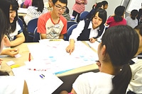 その後、グループで『あなたがユニセフの担当官なら』というテーマのもとワークショップを行い、「ネパールのある村の子どもの教育状況を考え、より多くの子どもたちが学校に行き、卒業するために、どういう活動をすると良いのか」という課題に取り組みました。