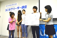 2014年8月13日(水)、品川にあるユニセフハウスにて中学生・高校生を対象としたユニセフリーダー講座が開催されました。当日は、全国各地から参加した中学生・高校生の皆さんが、世界の子どもたちの現状やユニセフの活動について学ぶとともに、ネパール人留学生の講演やワークショップを通して、世界の子どもたちのためにできることを考えました。