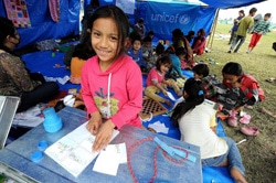 ユニセフネパール事務所では、安全な水の供給、仮設の避難所や病院の設置、親を亡くしたり、家族とはぐれてしまった子どもたちの保護、検問所や交番の強化・新設の支援、一時的な学習スペースの設置などを行うとともに、141か所に「子どもにやさしい空間(子どもたちが安心して遊んだり、勉強したり、地震のショックから回復する支援をする場所)」を設置しています。また、バック・トゥ・スクール(学校に戻ろう)キャンペーンも展開しています。